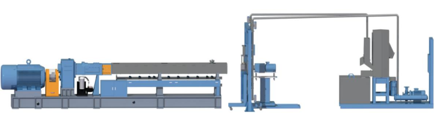 該系統通常包括模頭,切粒小車,旋風分離、振動輸送等。